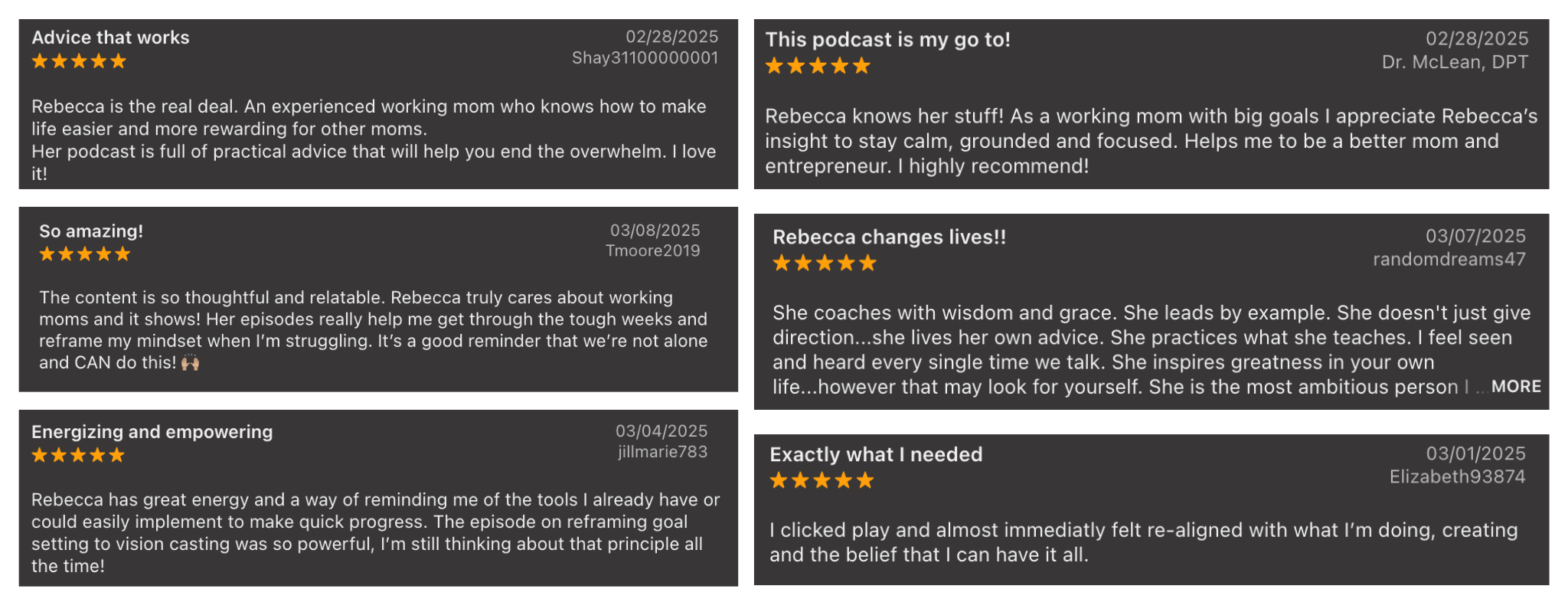 With over 200,000 downloads from working moms around the world, the Ambitious and Balanced Working Moms Podcast is a trusted space for women navigating ambition, motherhood, and balance.